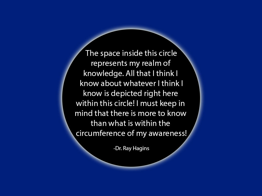 The space inside this circle represents my realm of knowledge. All that I think I know about whatever I think I know is depicted right here within this circle! I must keep in mind that there is more to know than what is within the circumference of my awareness!
